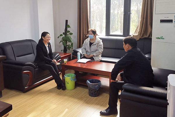 pp电子党委书记冉春桃与栗庙社区领导班子进行调研与交谈。