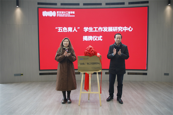 副校长徐拥华(右)、教务处处长吴茜(左)共同为“‘五色育人’学生工作发展研究中心”揭牌。刘恒 摄