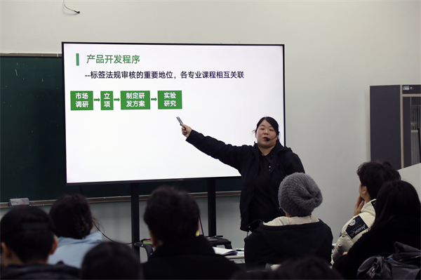 “食品安全是民生之本,而标准与法规则是食品安全的基石。”“在食品生产、加工、流通的每一个环节,标准与法规都扮演着‘守护者’的角色。”《食品标准与法规》课上,食品与生物科技学院张宇老师以自己曾在国家蛋品加工技术研发专业中心工作的经历为例,向同学们阐述了食品标准与法规在保障公众健康和社会稳定中的重要作用。“如何判断一款食品是否符合国家标准?”“食品标签上的‘营养成分表’应该如何看?”她通过投影展示了一份食品标签的示例图,详细解读了标签上各项信息的法律依据和标准要求。