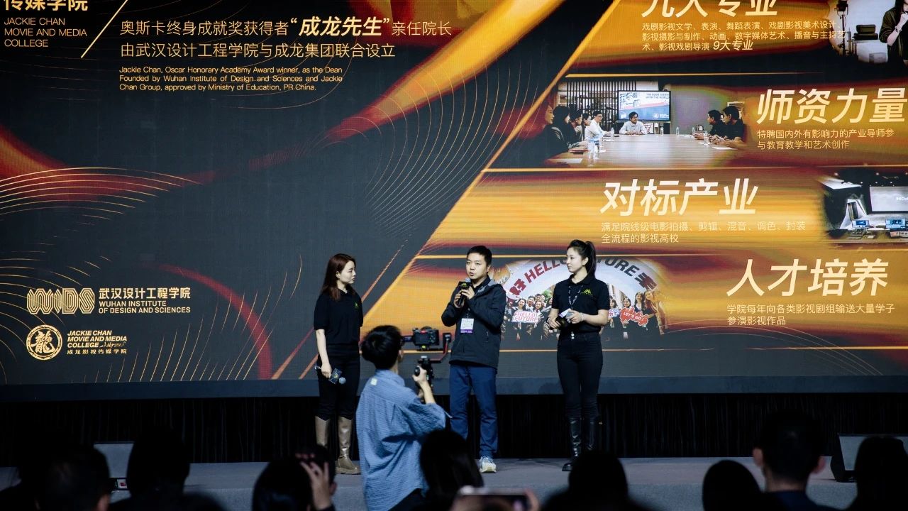 “成龙电影A计划是成龙影视传媒学院教育实践的核心载体,双方通过系统化培养体系及行业资源共享,持续完善青年电影人才可持续发展机制。”成龙影视传媒学院执行院长杨恒教授在影展上就学院办学理念、办学特色、专业服务社会以及学院与A计划的产学合作展开介绍。