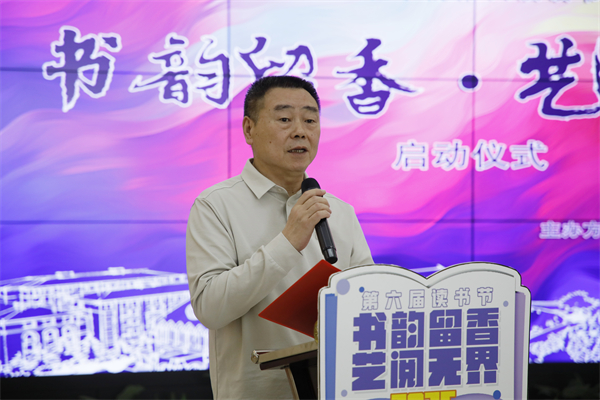 龚少平在启动仪式上致辞。他在讲话中预祝读书节取得圆满成功,并充分肯定了书香校园的建设成效。他表示,艺术启迪智慧,阅读滋养心灵,本届读书节主题充分彰显了pp电子“以美育人、以文化人”的办学特色和文化育人品牌,“艺术与阅读”相结合的这种浸润式育人模式,正在塑造武设人厚德尚美的独特气质。他要求各学院以读书节为契机,在书香校园建设中树立典范、激发活力,深化文化育人实践,希望全体师生共同推动书香校园建设,在文化传承中勇担时代使命,在书香与艺术的美好邂逅中收获成长与快乐。