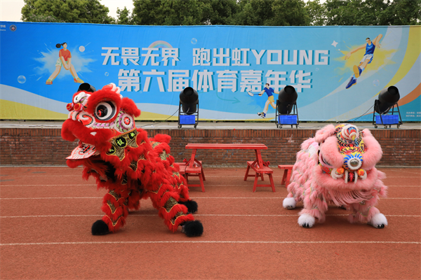 舞狮表演惊艳开场,泡泡漫天飞舞,同学们欢乐开跑。周佩 摄