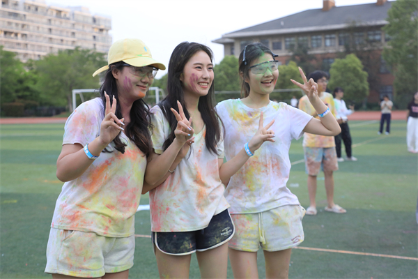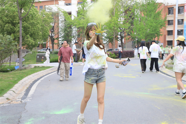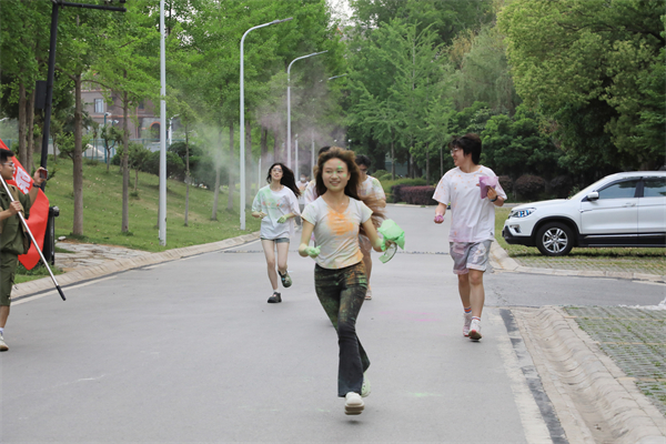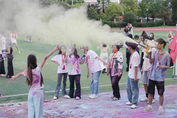 “边跑边玩,非常释放!”一位满脸彩粉的同学大笑着将手中的彩粉抛向天空,一旁的同伴帮她记录下这场独一无二的“彩色青春纪念”。