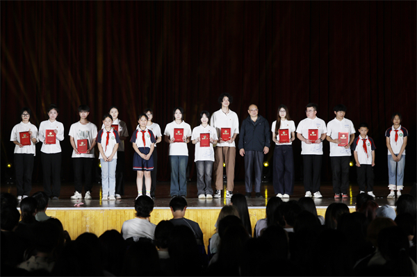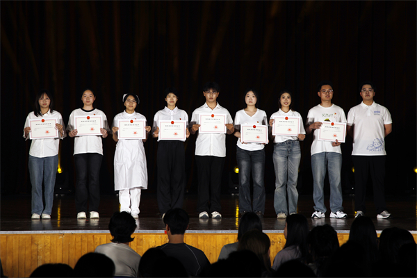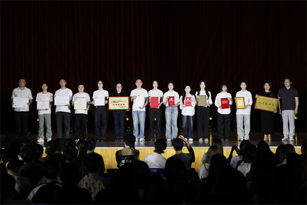 董事长程凡为全国第七届大学生艺术节展演活动优秀组织奖代表、五色阳光志愿服务队代表、“中国大学生自强之星”安景顺、湖北省2024年度“悦学习·跃青春—百生讲坛”省级银牌主讲人周林楠、第二届全国大学生职业规划大赛湖北赛区银奖陆婷婷、全国百佳心理委员陈思音、第三届武汉青年心理情景剧“最佳表演奖”“优秀组织奖”代表、湖北省第十三届“挑战杯”大学生创业计划竞赛优胜杯、中国国际大学生创新大赛(2024)湖北省复赛优秀组织奖代表、十四届“挑战杯”中国大学生创业计划竞赛、中国国际大学生创新大赛、全国大学生生命科学竞赛获奖团队代表颁奖。