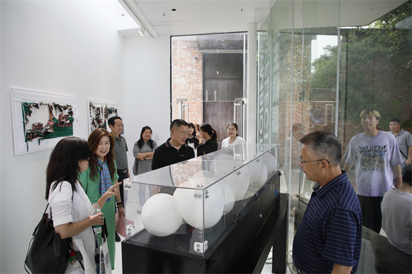 学校领导与校外嘉宾参观作品展。刘恒 摄