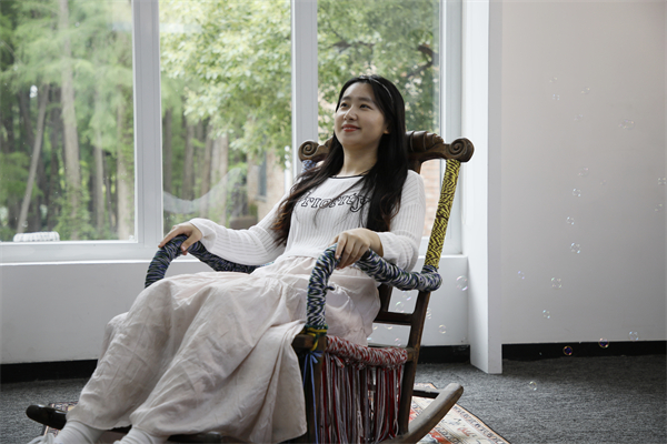 意想不到的作品还有颇具趣味性的互动装置“白日梦想家”,作品以薄膜压力传感器作为核心交互介质,当观众落座于特制座椅之上,压力数据便实时驱动装置运转,促使透明气泡从椅背处悠然升起。“该作品不仅融入情感化设计,还巧妙重塑了公共艺术中‘观看者’与‘创作者’之间原本泾渭分明的界限。”李彤昕讲解说。