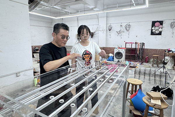 作品《谁是纳税人》把消费数据幻化成别具一格的铁线装置艺术,表达出公众纳税意识。刘恒 摄