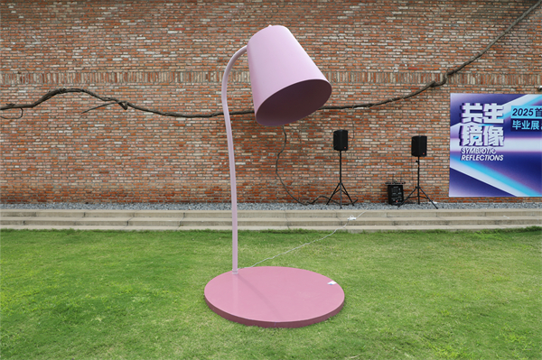 “参展作品不仅是视觉表达的载体,更是社会现实观察的棱镜。”据学校教务处处长、公共艺术学院常务副院长吴茜介绍,此次展览以“共生镜像”为题,共有40件作品分别在东湖杉美术馆和学院实践教学中心同步展出,呈现了该专业全体毕业生对公共视觉的解构与重构,作品类型涵盖雕塑、动态装置、交互艺术、行为艺术等多种形式,反映了青年艺术家们对“共生”主题的多元解读与创新表达。