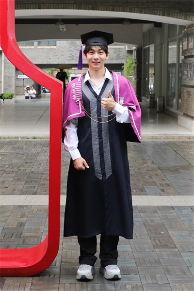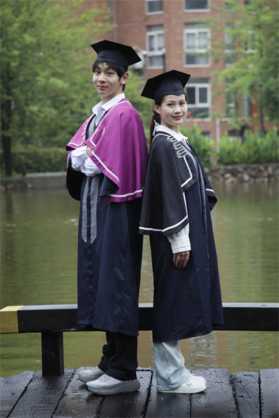 “穿上自己设计的学位服非常有范,图书馆、银杏叶……这些承载着青春记忆的武设标志性元素皆融入其中,很有纪念价值。”黄姚一珂与周阳表示,“还有‘藏’进细节里的传统文化元素,穿上瞬间感觉文化底蕴蹭蹭涨……”