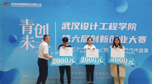 万荣誉(左三)荣获学校第六届创新创业大赛二等奖。