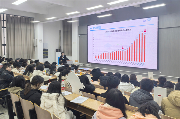 食品与生物科技学院副院长付晓燕开展分析考研形势讲座。