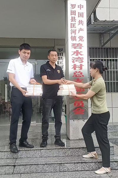 食品与生物科技学院党总支书记李中原、教师党支部书记罗璇代表学校向碧水湾村委捐赠学习用书。