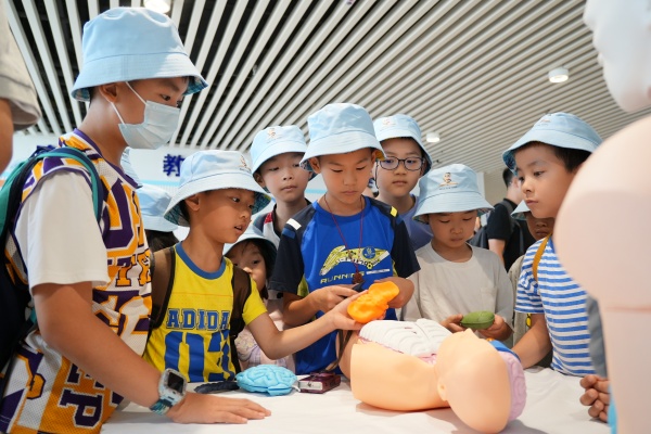 小朋友们在“知心伙伴”展区通过3D器官模型认识人体器官,体验器官模型“拼图”。徐正刚 摄