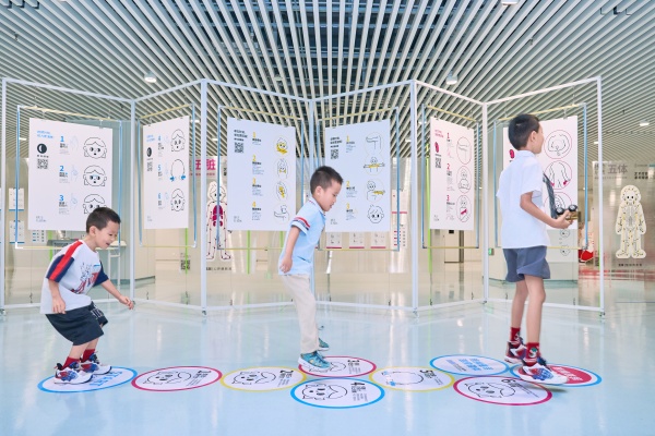 小朋友们在“活力导引”区体验“眼操跳房”。武汉亚心总医院 供图
