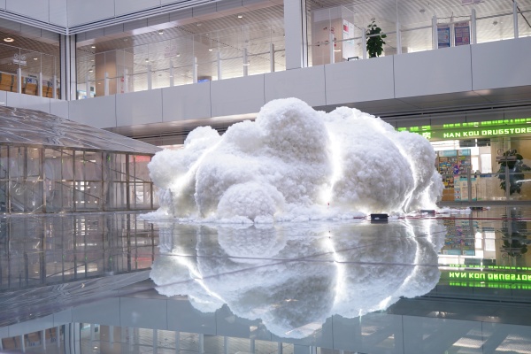 位于玻璃中庭的《云朵》巨型装置,以“竹为骨,棉为肤”,将“云朵自然元素”升华为悬浮的诗意。王纯 摄