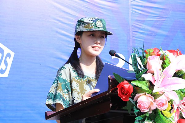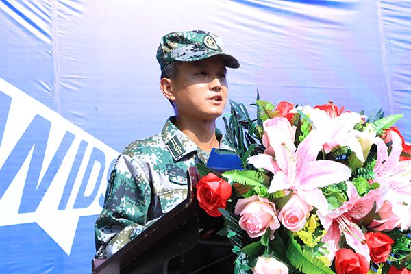 承训教官代表李翔上台讲话。他表示,军训是大学生接受国防教育的必修课,为圆满完成这项光荣任务,他代表全体教官承诺:严格遵守军训有关要求和学校管理规定;时刻保持良好军人姿态,以身作则;严格按照军训计划科学施训、灵活组训、文明军训。