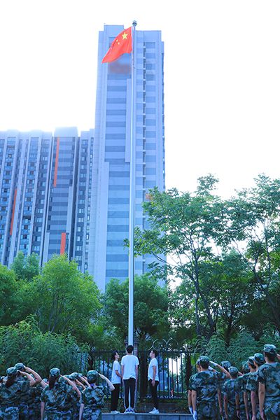五星红旗冉冉升起,拉开军训阅兵暨总结表彰大会的帷幕。刘恒 摄