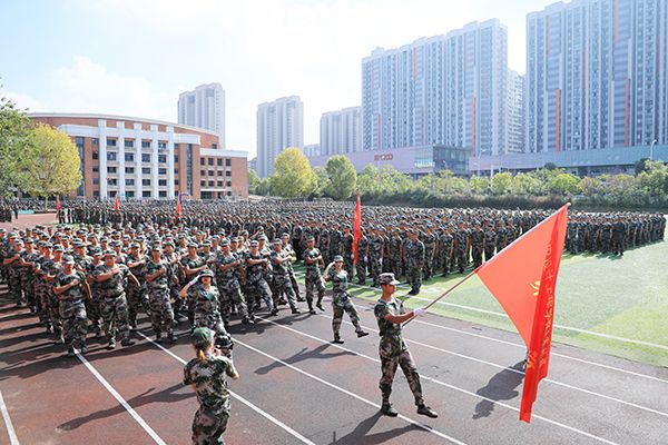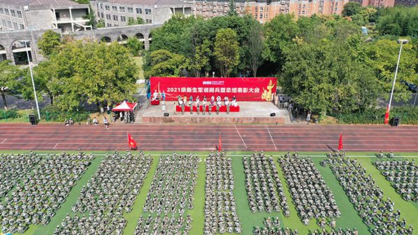 在慷慨激昂的《中国人民解放军军歌》乐声中,2021年新生军训阅兵暨总结表彰大会圆满结束。