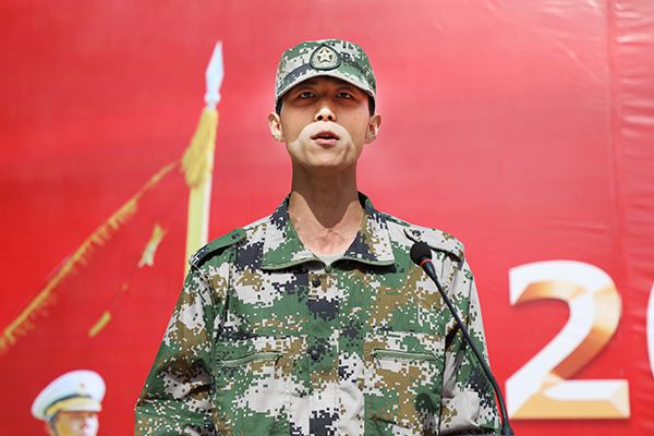 来自时尚设计学院的张立炜同学代表全体参训学生上台发言。他表示,军训是美好的、难忘的,十天的军训虽然晒黑了皮肤、浸湿了迷彩服,但让他们更加懂得了坚强独立的重要性。他感谢教官们“言传身教,教会了我们什么叫坚韧、刚毅、责任和团结,让我们懂得向前看、看未来,齐步走、走天下。”他表示,“大学生活已拉开帷幕,我们一定不会辜负期望!将军训的优良品质带到今后的学习和生活中,拿出敢于拼搏、勇于奋斗的精神应对接下来的挑战。”