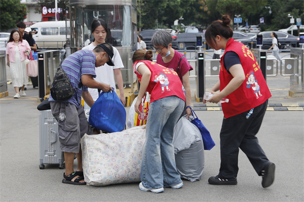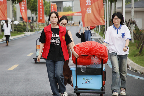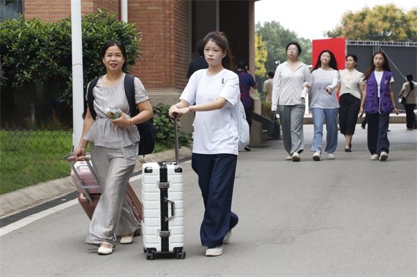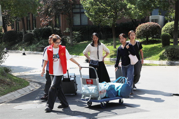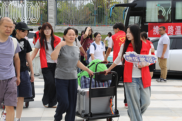 “我都已经接送了六个新生啦,巧的是,其中还有一个是老乡呢!”10日早上,来自智能工程学院的志愿者宰英皓拉着小拖车,向迎面走来的另一位志愿者“炫耀”。像宰英皓这样的志愿者堪称迎新现场“主力军”,他们着装统一,在校园“大道小径”与楼宇间穿梭,主动为新生提供一对一报到指引、行李搬运等服务,还分享校园生活小贴士,以热情与关心化解新生初入校园的紧张与陌生感。