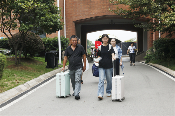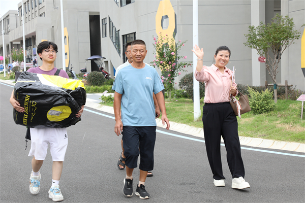迎新现场不仅有新生的朝气,更有家校陪伴的温情。不少新生在父母的陪同下拉着行李漫步校园,他们不时为孩子整理被风吹乱的头发,反复叮嘱“注意安全”“好好学习”“常打电话回家”,话语间满是牵挂与期盼。