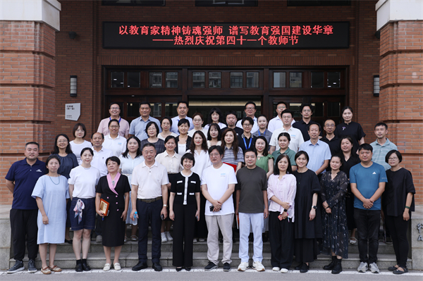 参加庆祝第四十一个教师节表彰暨教师座谈会的校领导、教师代表合影留念。谢逸涵 摄