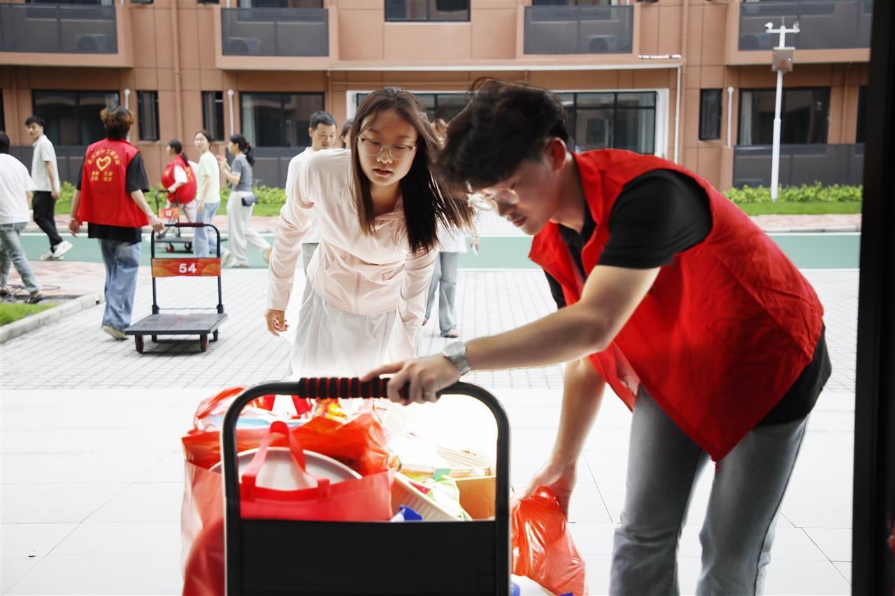 此次迎新志愿者队伍共有200余人,大多是在校生,熟悉校园环境,也更了解新生需求——去年入学时,丁逸足就对红安校区的“现代大气”深刻印象。“今年校区又有新变化、食堂窗口翻新、女生宿舍装了滚筒洗衣机、男生宿舍也做了调整,这些都是我们去年提的意见,学校都采纳了。” 正是这份对校区的认可感,让大家主动加入志愿者行列,将这份温暖传递下去。在南区宿舍楼下,几名志愿者正合力将一个装满行李的大箱子搬上三楼。“从早上7点到现在,已经跑了十几趟了。”其中一名志愿者擦着汗笑道,“看到新生期待的表情,就想起去年的自己,累点也值。”除了校内引导外,学校还安排了专车往返红安西站接新。“大巴上会提供饮用水,下车后志愿者会帮忙搬运行李,让新生第一时间感受到学校的人文关怀。”丁逸足补充道。