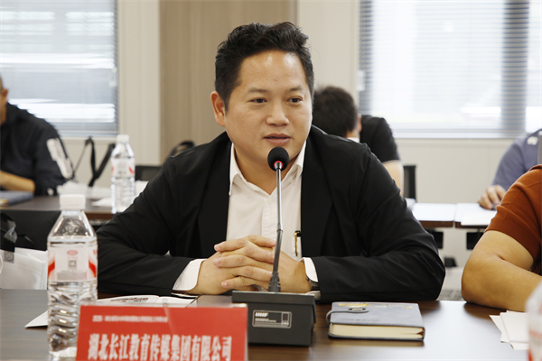 湖北长江教育报刊传媒集团桂子山教育研究院院长、《湖北教育》杂志执行主编鄢志勇介绍长江教育传媒集团发展战略。刘恒 摄