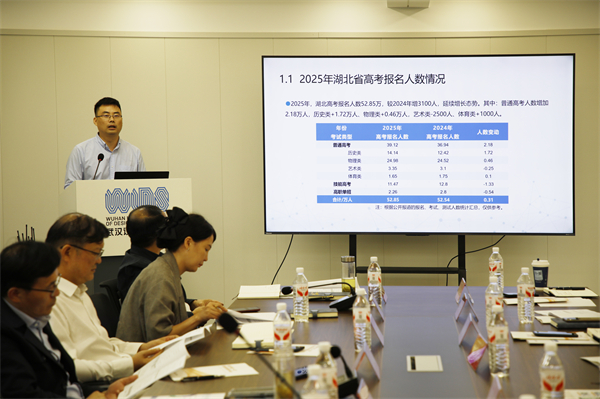 湖北橙才教育研究院副院长谌文龙围绕2025年湖北省普通高校招生录取情况作专题分析报告。刘恒 摄