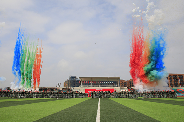 军事训练特色科目展示和分列式环节,激情与热血肆意迸发,现场气氛热烈。
