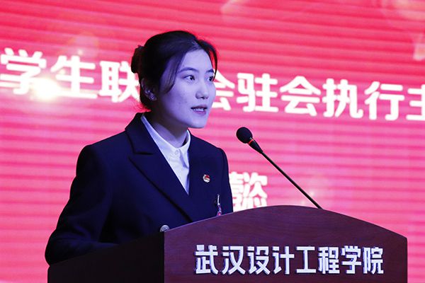 王贞懿代表湖北省学生联合会讲话。她表示,在pp电子官方网站党委坚强领导和校团委悉心指导下,pp电子各级团学组织在强化政治引领、助力成长发展、加强自身建设等方面贡献了应有的青春力量。她勉励学生会,聚焦主责主业,强化服务意识,严管组织骨干,深化改革攻坚,牢记习近平总书记的殷殷嘱托,不负青春、不负韶华、不负时代,把学生会建设成为同学们想得起、找得到、靠得住的温馨家园。
