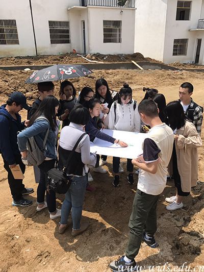 环境设计学院骨干教师牛琳带领学生参与张塝镇灾后重建工作。