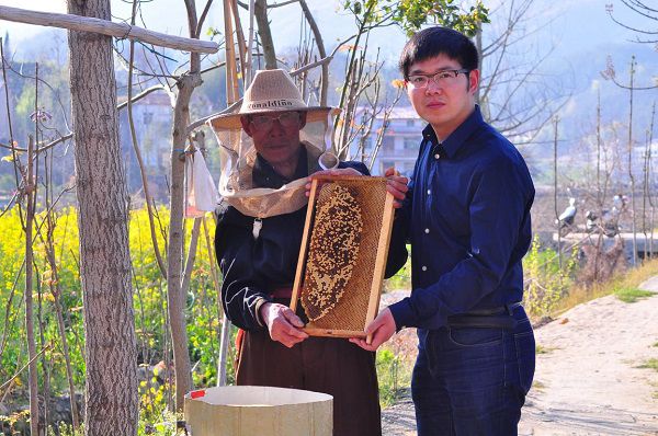 商学院毕业生,大学生村官徐粱探访蜂农。