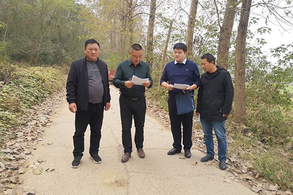 食品与生物科技学院毕业生,大学生村官幸博文(右二)踏勘443省道改扩建项目。
