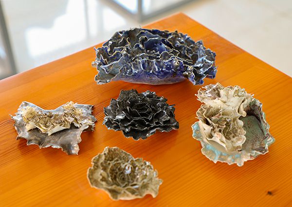 展览现场,一组名为《花》的陶艺作品获得本届学生作品一等奖。作者是来自于公共艺术学院工艺美术专业的韩菁。“一花一世界。因为花很美丽,所以我选择这个主题。整个创作过程自由随意,也是我追求的感觉。”薄如蝉翼的花瓣、自然舒散的生长趋势和浓淡交叠的釉色,透出一股漫不经心的从容和一丝清朗飘逸的韧劲。作品独特的气质吸引了众多陶艺爱好者驻足。