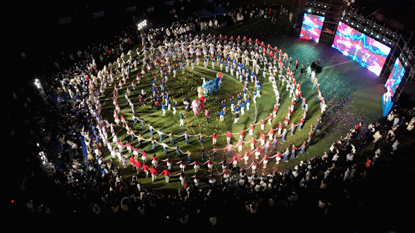 师生融乐,澎湃涌动。四十名师生共同演绎的《教师动起来》嗨翻全场。平日里执笔耕耘的园丁,与同学们并肩起舞,在欢快的乐曲中跨步击掌、默契互动,以活力四射的舞步表达对学校的热爱。