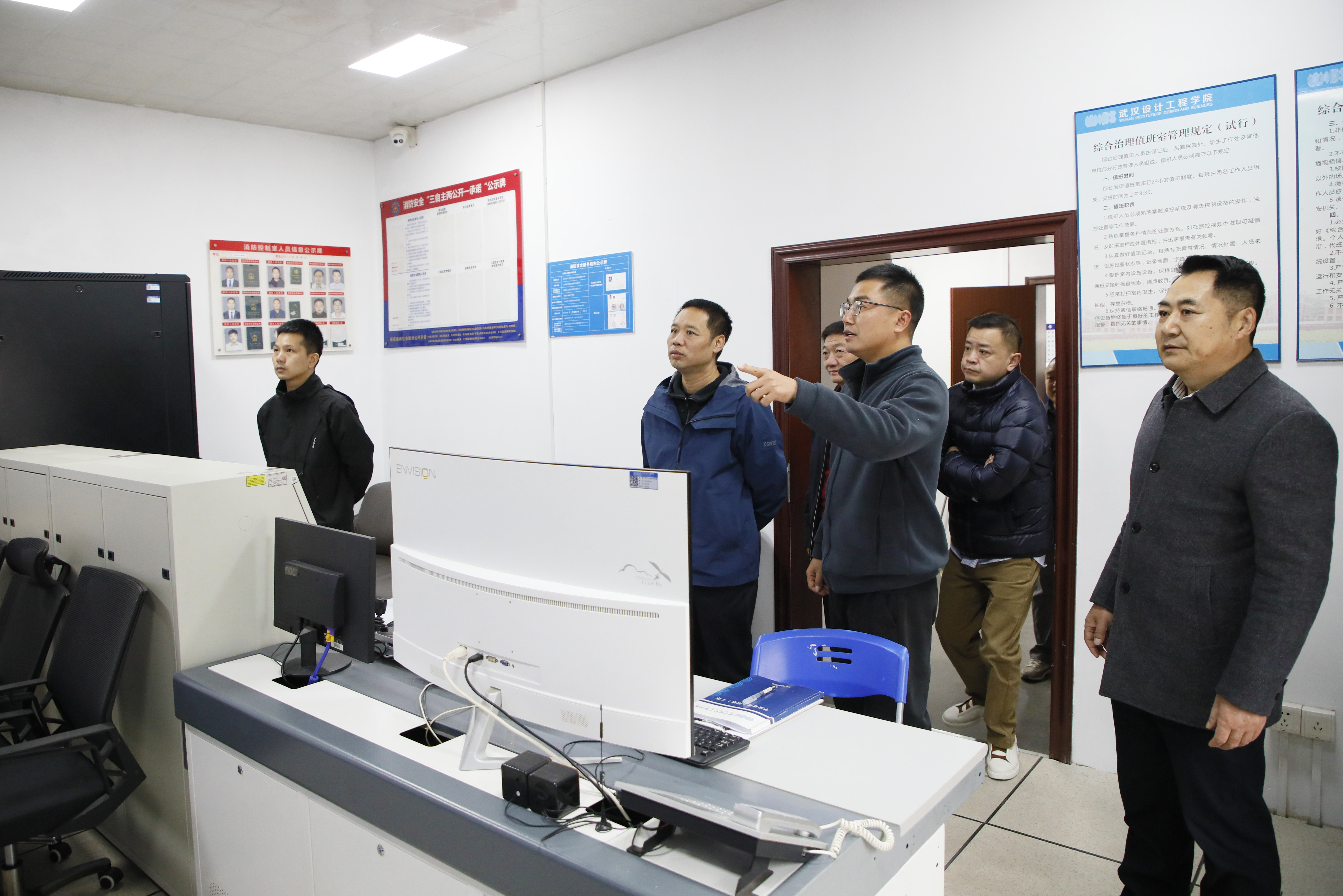 尹文韬一行实地走访了pp电子重点实验室、校大门安防管控区、校园安全指挥中心、二号门外人行道交通要道及学生食堂等关键部位,详细查看了安全设施配备、管理制度落实及周边环境治理情况,对具体环节的安全防范与应急处置进行指导。