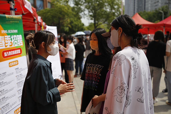 毕业生们积极与用人单位沟通。王雨婷 林枟至 摄