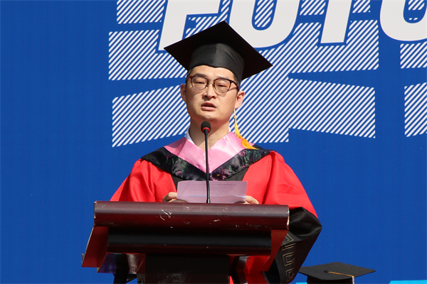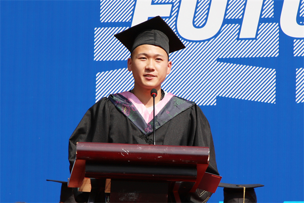 毕业生代表李云飞在典礼上发言。易雨竹 摄