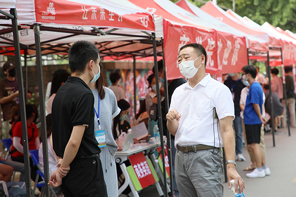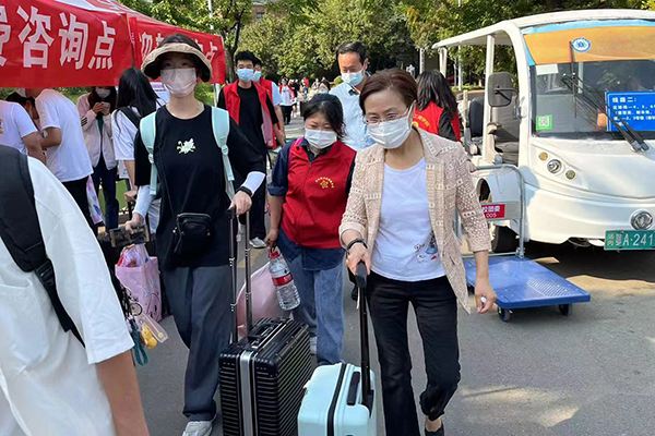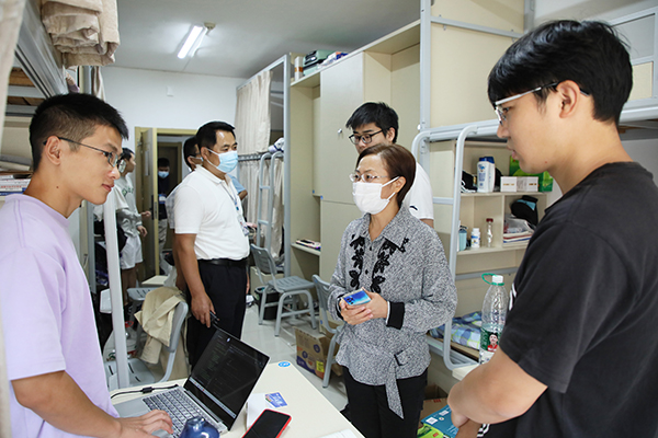 “你们要注意保持距离,不要扎推。”“你们要注意防暑防晒!”“我们的志愿者太辛苦啦”……校领导检查了迎新现场疫情防控工作,慰问迎新工作人员和学生志愿者,嘱咐各学院和相关部门要严格落实校园疫情防控政策,按要求对新生报到的各个环节严格把关,做到让家长放心、学生放心;还要全力做好迎新服务保障工作,让新生感受到学校的热情和周到,确保新同学顺利入学。