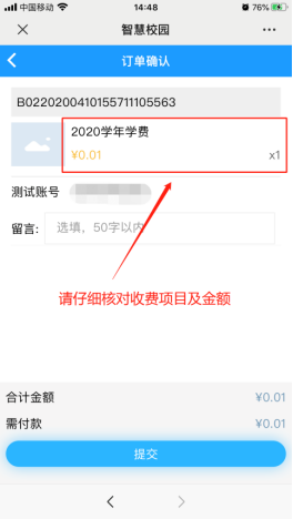 8.勾选需缴费的项目,点击“立即支付”,进行合并支付,也可进行单项支付。核对项目及金额,确认无误后点击“提交”。