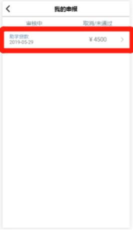 (3)提交申报后,返回到贷款申报页面,点击右上角“我的贷款申报”,可查看贷款进度(审核中/取消/未通过)。