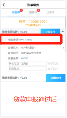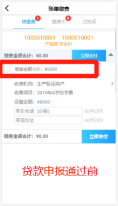 注:贷款申报通过审核后,缴费金额自动减掉贷款金额,需要缴纳剩余部分即可。