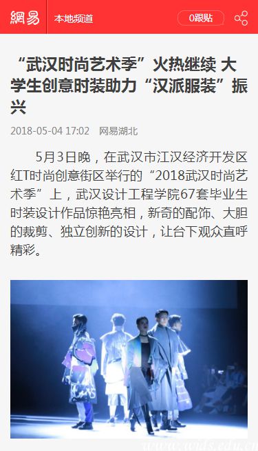5月3日晚,在武汉市江汉经济开发区红T时尚创意街区举行的“2018武汉时尚艺术季”上,pp电子官方网站67套毕业生时装设计作品惊艳亮相,新奇的配饰、大胆的裁剪、独立创新的设计,让台下观众直呼精彩。