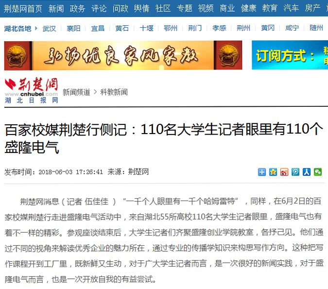 荆楚网消息(记者 伍佳佳)“一千个人眼里有一千个哈姆雷特”,同样,在6月2日的百家校媒荆楚行走进盛隆电气活动中,来自湖北55所高校110名大学生记者眼里,盛隆电气也有着不一样的精彩。参观座谈结束后,大学生记者们齐聚盛隆创业学院教室,各抒己见。他们通过不同的视角来解读优秀企业的魅力所在,通过专业的传播学知识来构思写作方向。这种把写作课程开到工厂里,既新鲜又生动,对于广大学生记者而言,是一次很好的新闻实践,对于盛隆电气而言,也是一次开放自我的有益尝试。