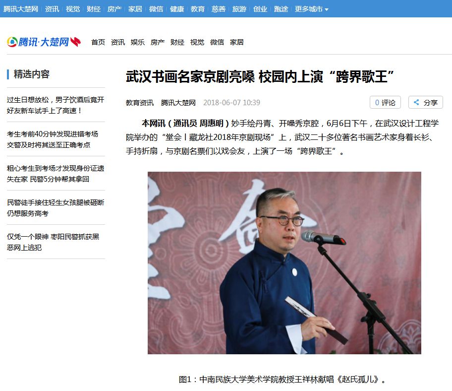 图1:中南民族大学美术学院教授王祥林献唱《赵氏孤儿》。