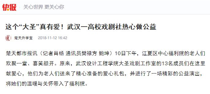 大圣戏剧工作室的负责人查文钰通过江夏区民政局了解到这一情况后,主动与福利院联系,“希望能通过我们的活动为老人们带去欢乐和笑容,希望他们能够从我们这群朝气蓬勃、热情洋溢的年轻人感受到关心和温暖。”