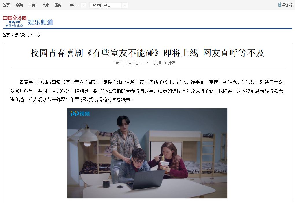 该剧属于校园青春类网剧,这类题材近年来成为市场新宠,网络视频经过高速的发展,在质量上已经可以媲美卫视水平,而且风格更加活泼多变,深受快节奏的年轻人群体喜欢;《有些室友不能碰》冲击当下流行的网络短视频市场,每集十几分钟的时间充分挖掘用户的碎片时间,可以让观众在茶余饭后、上班途中就能享受精彩剧集,减少用户追剧压力;同时紧凑不拖沓的剧情更符合年青一代的追剧习惯,精准把脉用户潮流走向。该剧导演张文爽擅长青春/喜剧题材,对画面的美感和以及情感戏的把控到位,曾经拍摄过《我和X先生》、《只为遇见你》等网剧作品,与该剧定位不谋而合。编剧阵容是作家兼编剧的艾亦文和丁浩,二人分辨担任过多部电影电视剧的编剧工作,两位新锐编剧对网剧更是功底深厚,驾轻就熟。