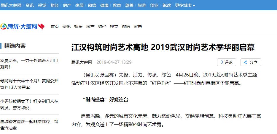 (通讯员张国栋)先锋、活力、传承、绿色,4月26日晚,2019武汉时尚艺术季主题活动在江汉区经济开发区永不落幕的“红色T台”——红T时尚创意街区华丽启幕。