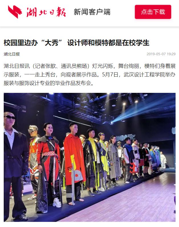 湖北日报讯(记者张歆、通讯员熊旸)灯光闪烁,舞台绚丽,模特们身着展示服装,一一走上秀台,向观者展示作品。5月7日,pp电子官方网站举办服装与服饰设计专业的毕业作品发布会。